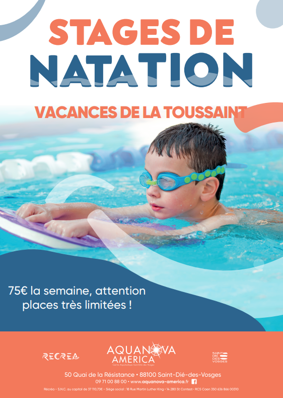 Aquanova america est un centre aquatique situé à Saint-Dié-des-Vosges dans le département des Vosges. Il dispose d'un espace aquatique composé de 4 bassins : une bassin sportif, un bassin avec jeux aquatiques, un bassin ludique avec une rivière à contre courant, et enfin un bassin extérieur. Aquanova America propose également une expérience unique grâce à sa fosse de plongée de 10m de profondeur. Pour les passionnés de fitness, vous pourrez profiter de l'espace forme mettant à disposition une salle cardio-training et musculation ainsi qu'une salle de cours collectifs. L'espace bien-être vous accordera un instant de détente grâce à ses 2 hammams, ses 2 saunas, son bassin nordique, sa salle de luminothérapie et sa tisanerie. Le petit plus du centre : sa plaine de jeux de 200m² avec ponts de singes, tunnels ou encore piste de karting qui raviront tous les enfants.